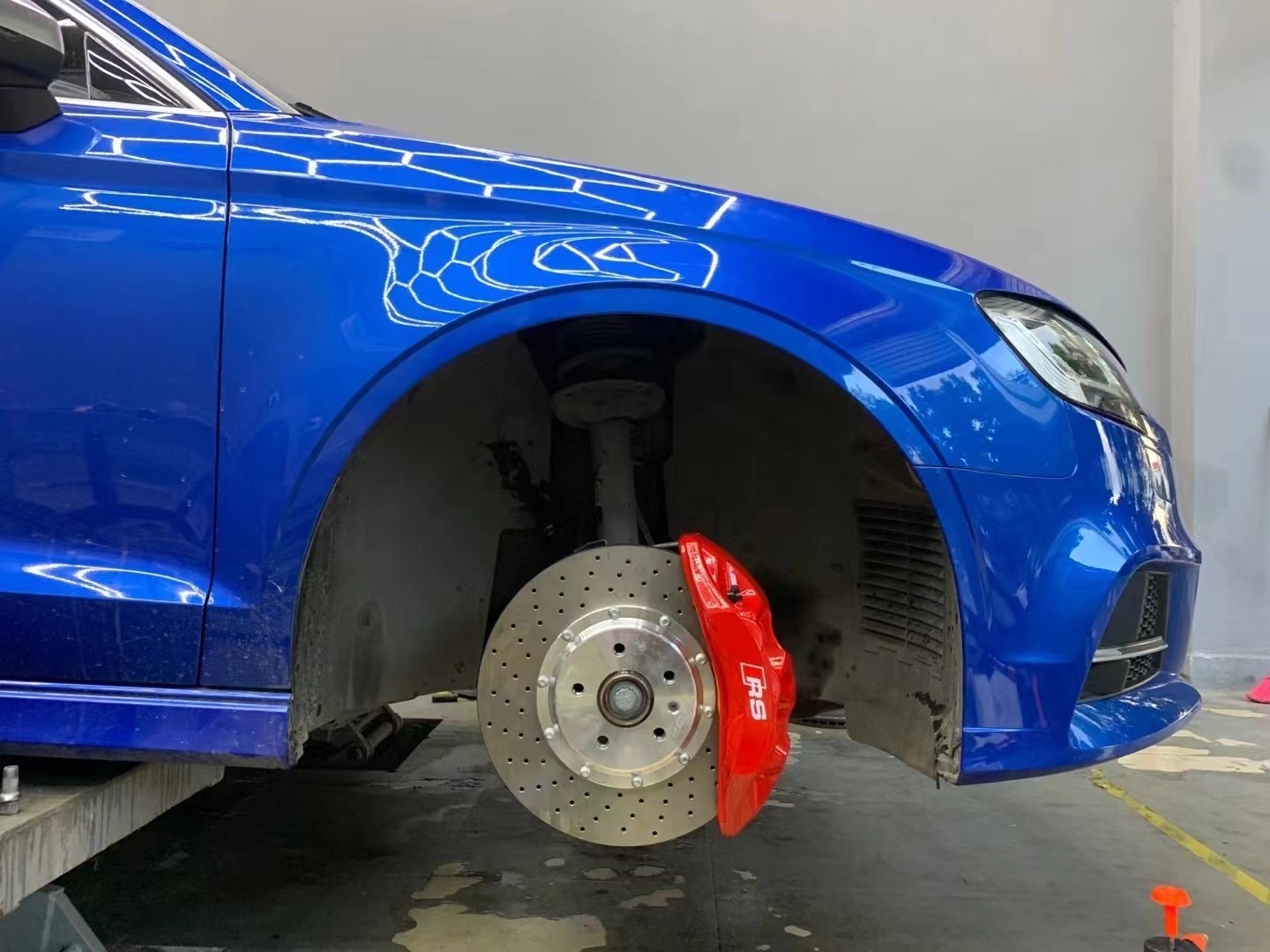 Можно выбрать цвет дисков и суппортов, а также рисунок тормозных дисков. Также можно изменить состав комплекта. Например заказать другие суппорта (4,6,8,10 поршней), а также тормозные диски другого диаметра. Доступны к заказу усиленные тормоза на заднюю ось.