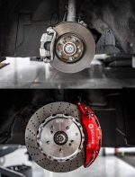 Можно выбрать цвет дисков и суппортов, а также рисунок тормозных дисков. Также можно изменить состав комплекта. Например заказать другие суппорта (4,6,8,10 поршней), а также тормозные диски другого диаметра. Доступны к заказу усиленные тормоза на заднюю ось.